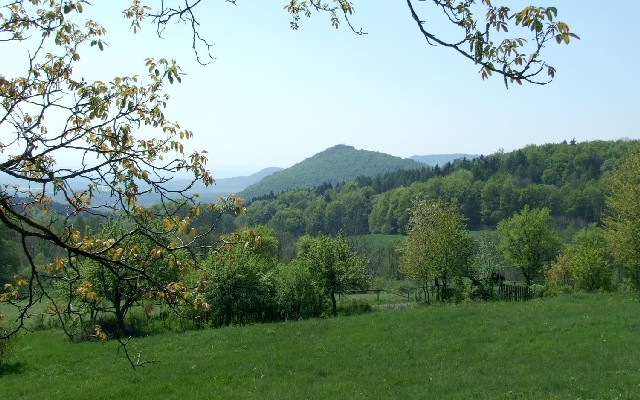 Kalich se zbytky žižkova hradu v krajině Českého středohoří