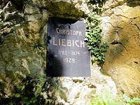 Černá pamětní deska je upevněna na vápencové stěně pod cestičkou vedoucí k Máchovu památníku z východní strany.
