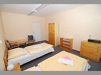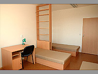 Ubytování v jednolůžkových, dvoulůžkových a třílůžkových pokojích na buňkách (2 pokoje se společným sociálním zařízením).